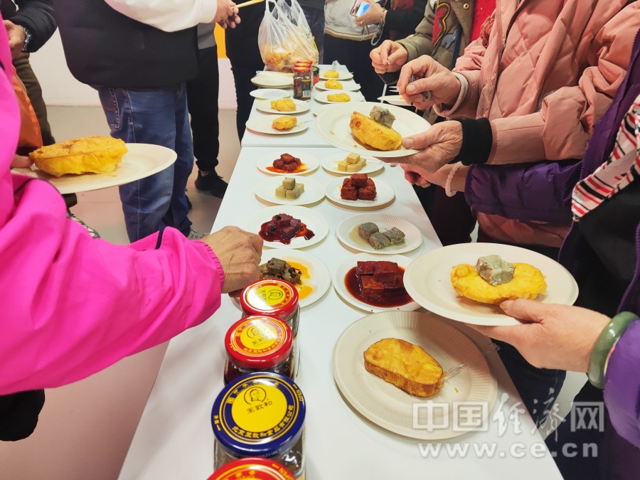 活动现场,主办方还邀请老街坊们一起品尝了多种不同口味的腐乳与炸得金黄的馒头片的“最佳组合”。