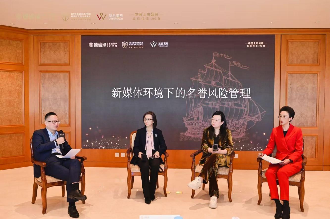 在下午的焦点论坛中,与会嘉宾就传承过程中的具体风险展开了深度对话。在“新媒体环境下的名誉风险管理”论坛中,苏秦会创办人兼会长陈向阳担任主持人,与原京东集团副总裁李曦、要客研究院院长周婷、高鸣飞律师一同探讨了在移动互联网时代,如何为企业及企业家的声誉构建全流程防护体系。