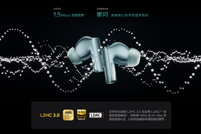 于9月25日发布的华为FreeBuds Pro 3搭载了全新L2HC 3.0,在强大的麒麟A2芯片和Polar码技术(星闪连接核心技术)的加持下,配合华为 Mate60系列手机,可以实现1.5Mbps的无损音频传输,带来了超越CD级无损音质聆听体验,也实现了TWS行业从全链路的高清音质到全链路的超CD级无损音质的跨越。