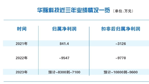 1月20日,华脉科技对外披露了2023年业绩预亏公告,公司预计2023年实现归属净利润为-8300万到-7100万元,扣除非经常性损益事项后,预计2023年实现归属净利润为-10800万到-9600万元。