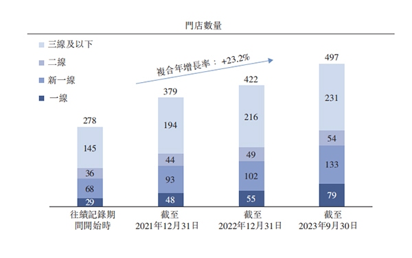 但从门店分布情况看,其中位于三线及以下城市的门店数量最多。招股书显示,2021年、2022年及2023年前九个月,小菜园位于三线及以下城市的门店数量占比均超过45%。相比之下,一线城市门店数量占比只有15%左右。