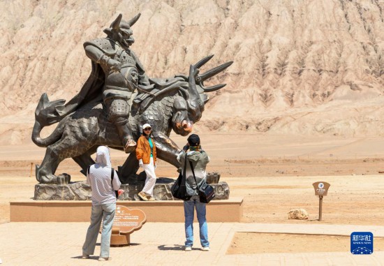 游客在位于吐鲁番市的火焰山景区游玩(6月27日摄)。
