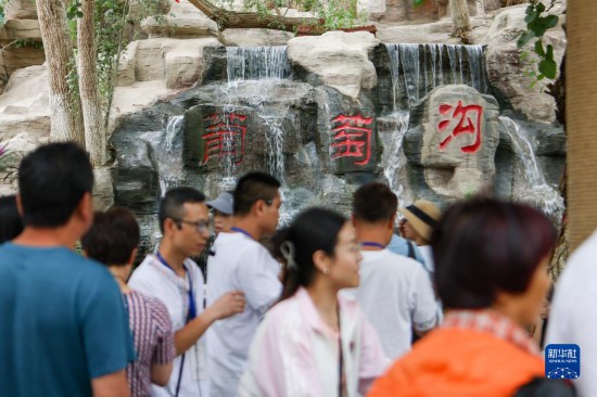 游客在位于吐鲁番市的葡萄沟景区参观(6月26日摄)。