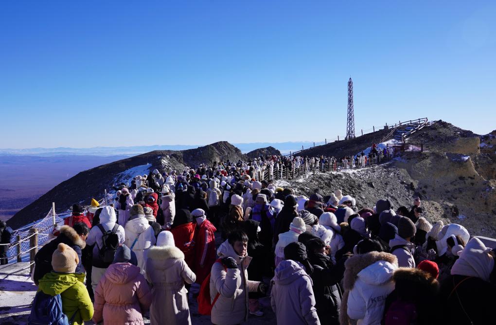 2023年12月26日,游客打卡长白山云顶市集。新华社记者 司晓帅 摄